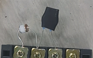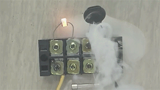視頻2: 回路中加電1000V,20A時,T-MOV起火燃燒。